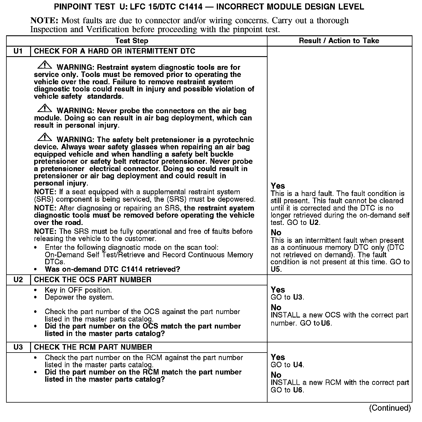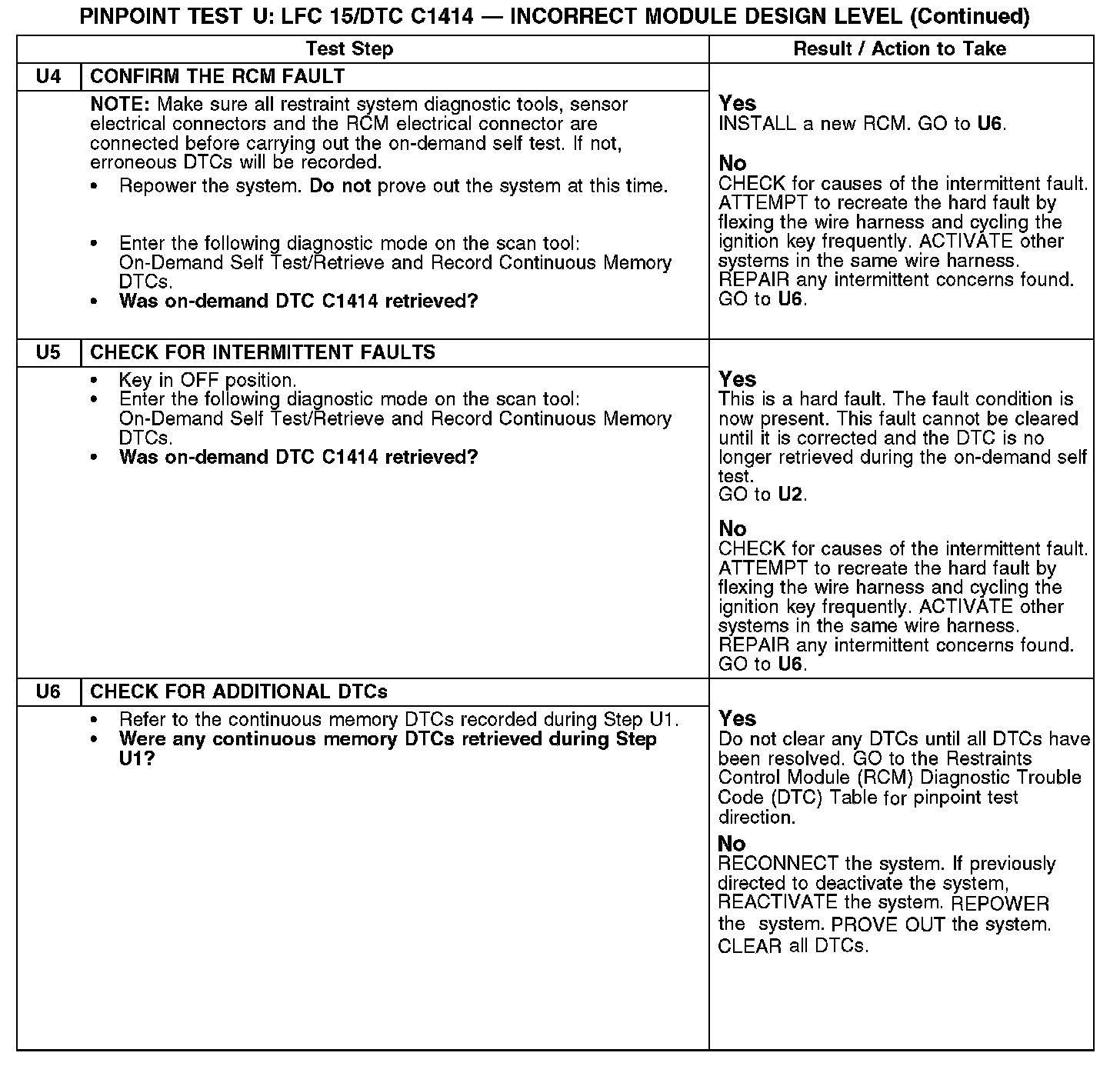 PINPOINT TEST U: LFC 15/DTC C1414 - INCORRECT MODULE DESIGN LEVELU1-U3: