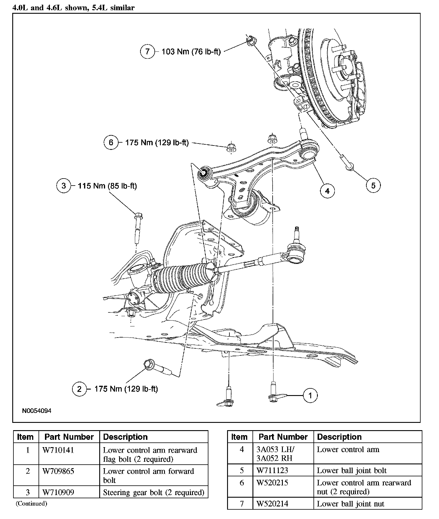 Lower Arm4.0L and 4.6L shown, 5.4L similar: