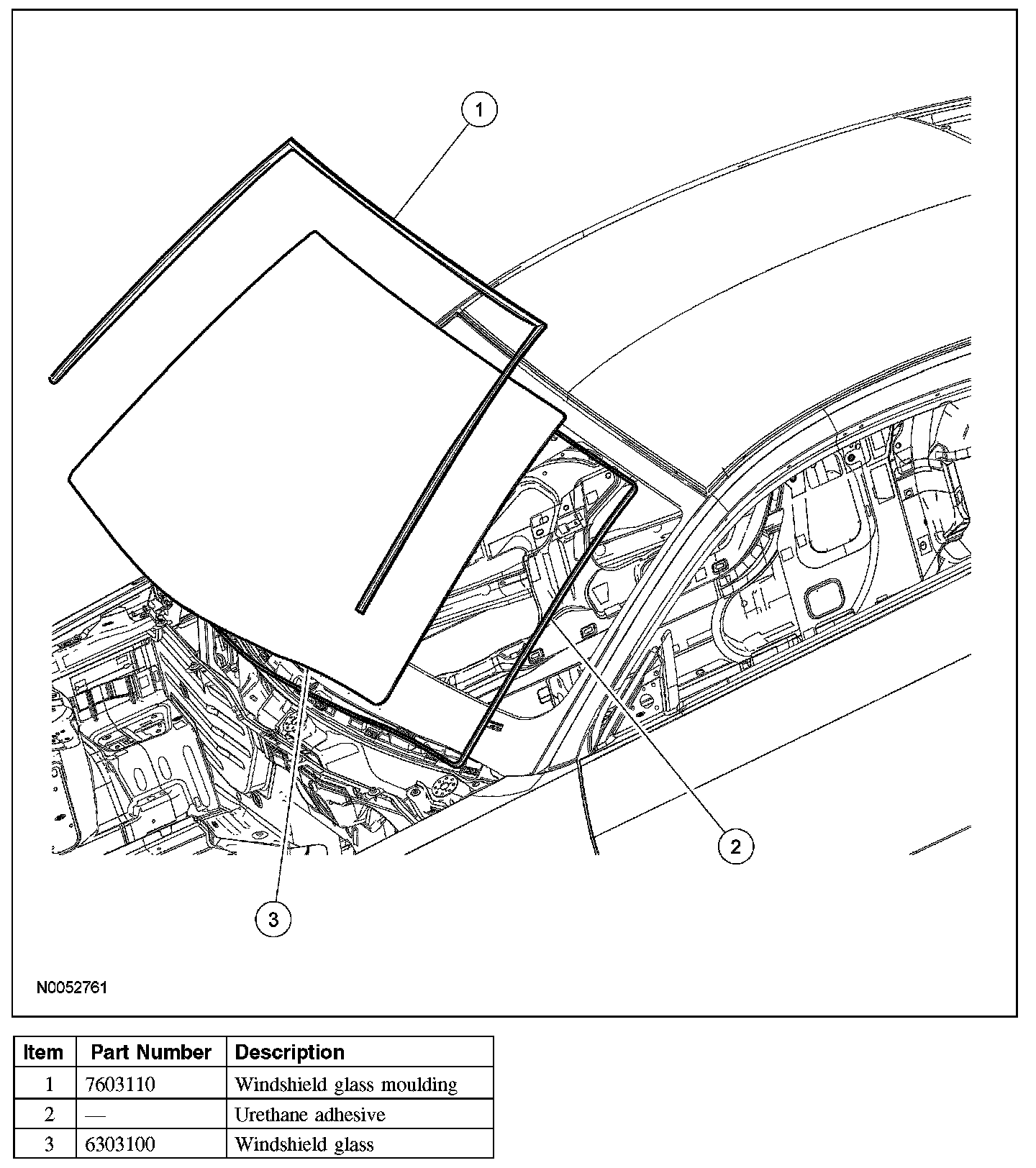 CAUTION: When installing the urethane installed glass parts, the vehicle must not be driven until the urethane adhesive has cured. Adequate cure time is specified on the drive away chart for each urethane product as the temperature and humidity vary. Inadequate or incorrect curing can adversely affect the retention of the windshield glass.