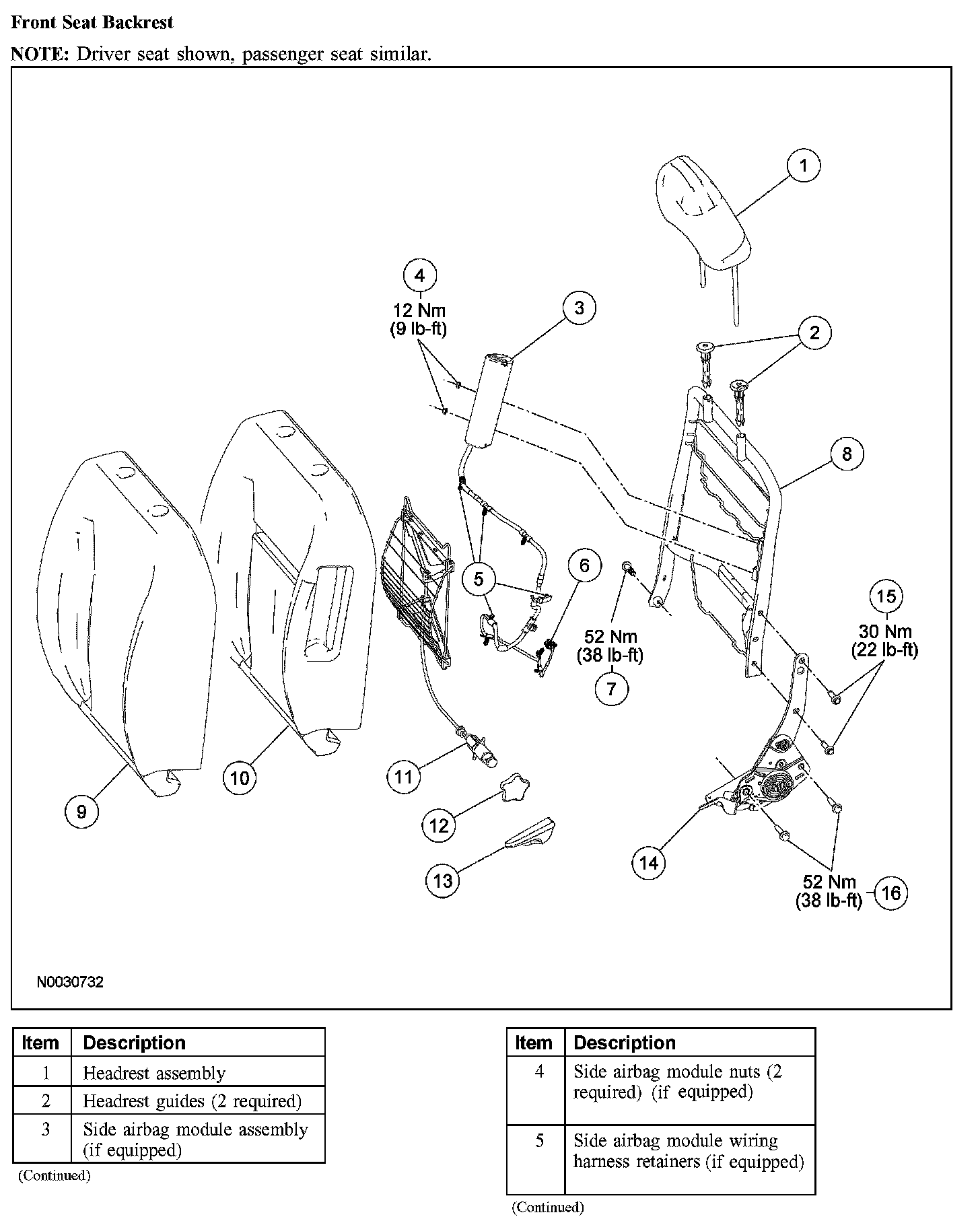 9. WARNING: Front seat backrest trim covers installed on seats equipped with side air bags cannot be repaired. New trim covers are to be installed (cleaning is permissible).