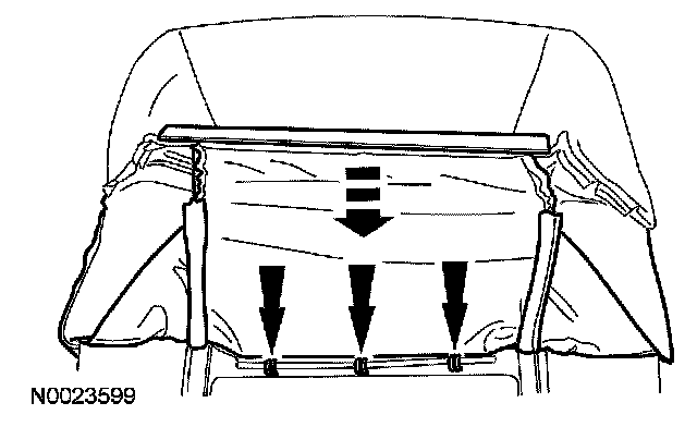 6. NOTE: If the pin-type retainers are damaged, install new retainers. This will keep the wiring harness routed correctly.