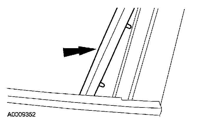 1. CAUTION: Due to the fragile make-up of the front door glass top run, removal is recommended only if the top run is damaged. Unnecessary removal may damage the light-gauge steel carrier insert within the rubber seal of the front door glass top run.