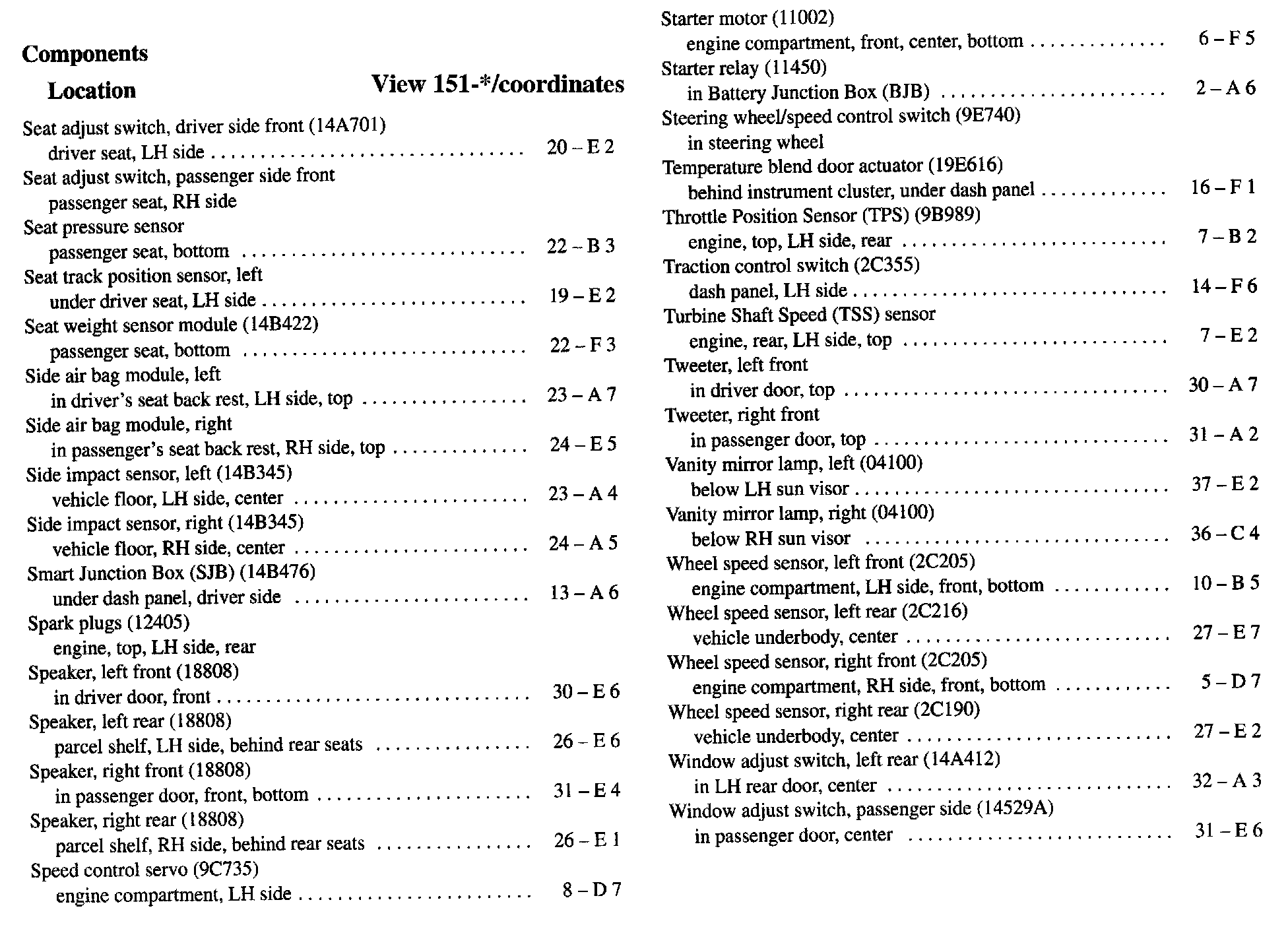If a link on the Component Location Index to a View is not provided, that means that the Component and/or View in question does NOT apply to the vehicle model selected.