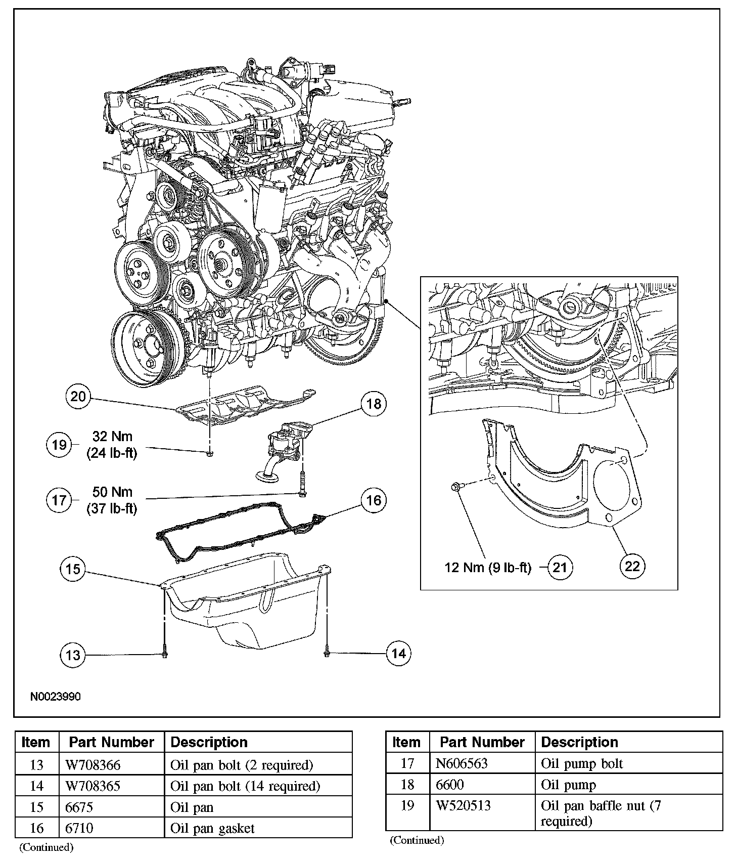 Engine Lubrication Components -Exploded View, Oil Pan, Oil Pan Baffle and Oil Pump (Part 3):