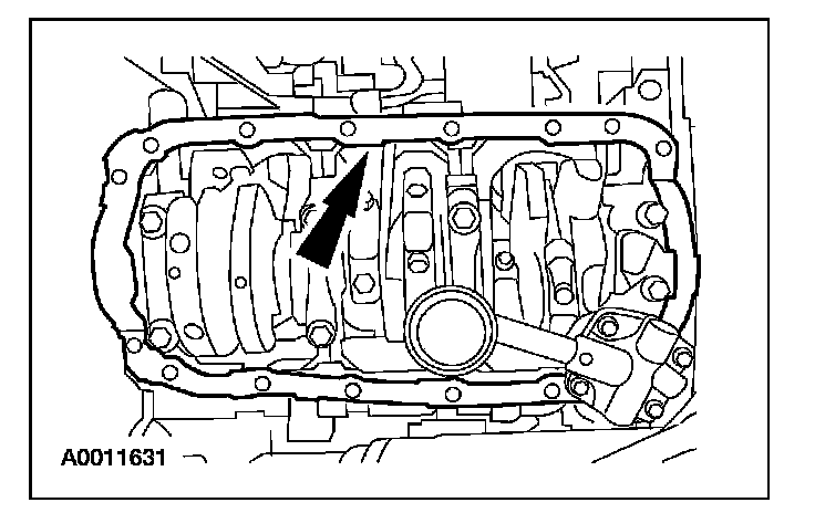 CAUTION: During engine repair procedures, cleanliness is extremely important. Any foreign material, including any material created while cleaning gasket surfaces that enters the oil passages, coolant passages or the oil pan, can cause engine failure.