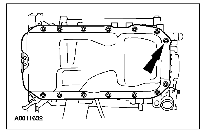 Tighten the oil pan bolts to 12 Nm (9 ft. lbs) in the sequence shown.