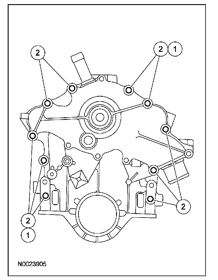 2. Install the engine front cover and coolant pump assembly.