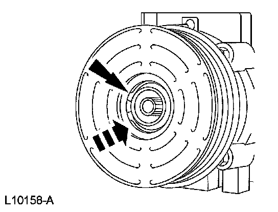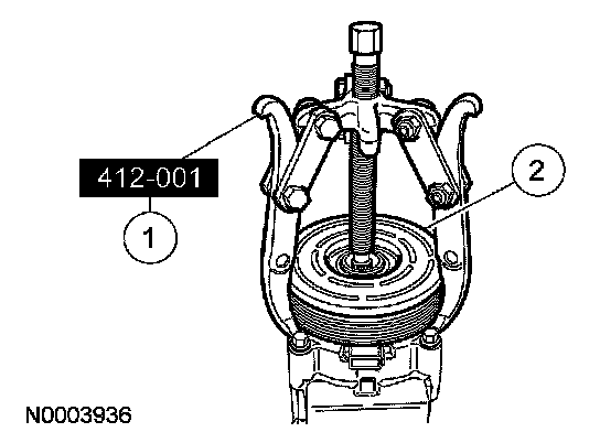 4. NOTE: The A/C clutch pulley is a tight fit on the A/C compressor head. It must be correctly aligned during installation.