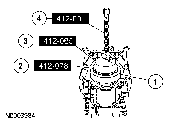 3. CAUTION: Do not use air tools. The A/C clutch field coil can be easily damaged.
