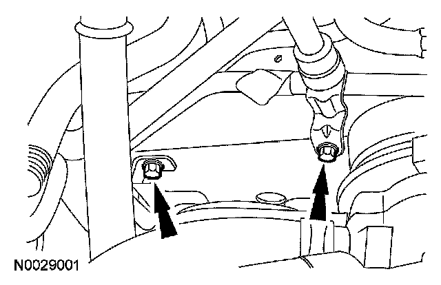 9. Remove the 2 condenser-to-evaporator line bracket bolts.