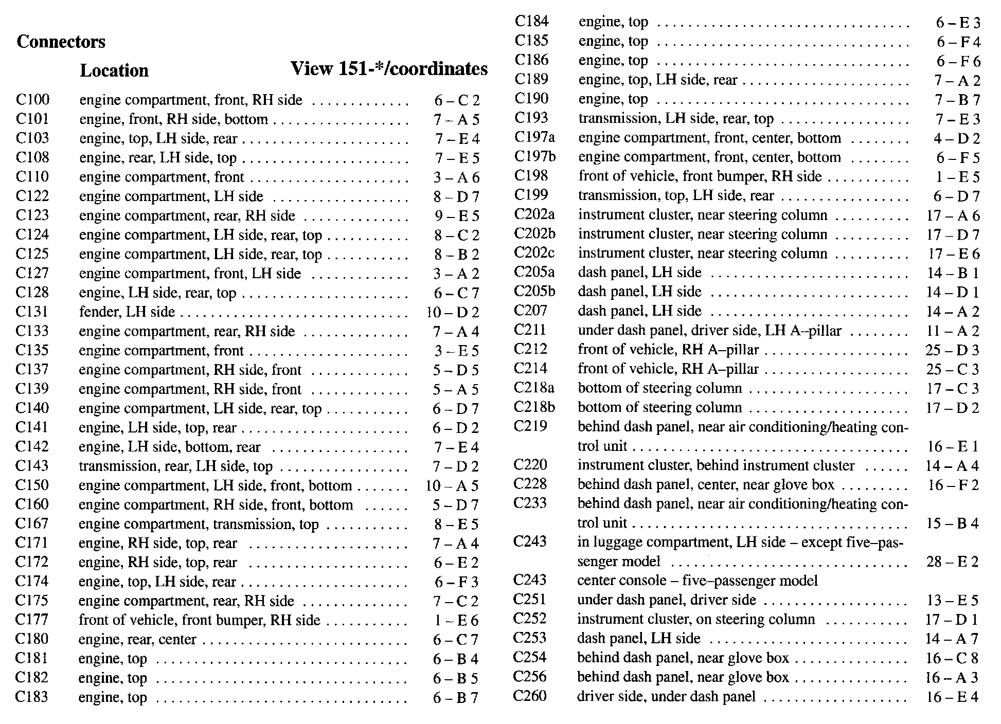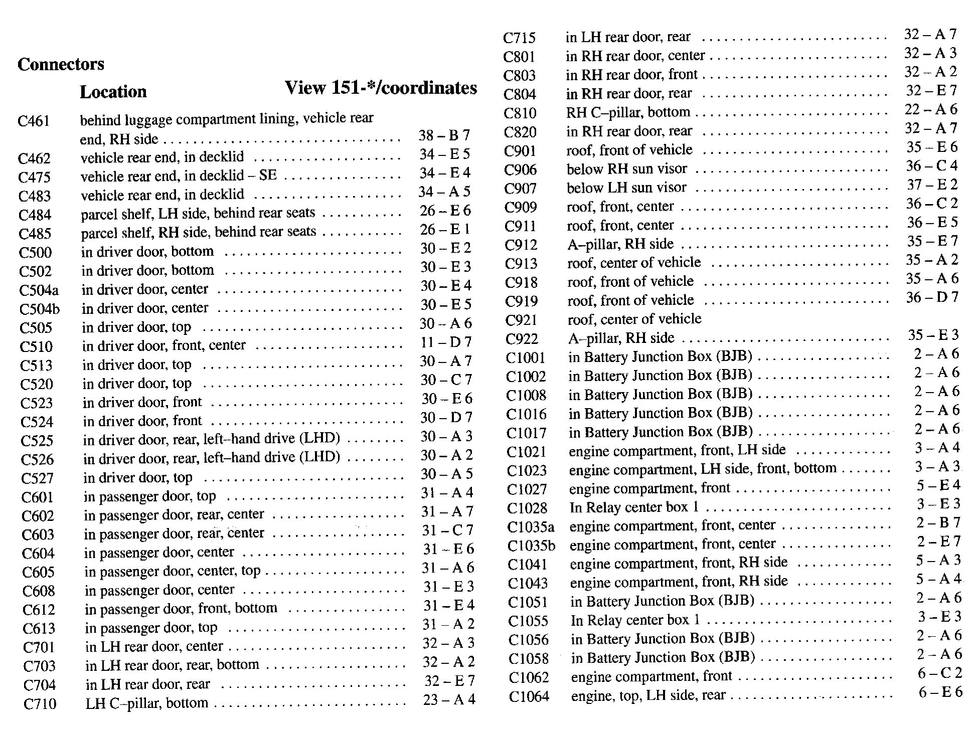 If a link on the Connector Location Index to a View is not provided, that means that the Connector and/or View in question does NOT apply to the vehicle model selected.