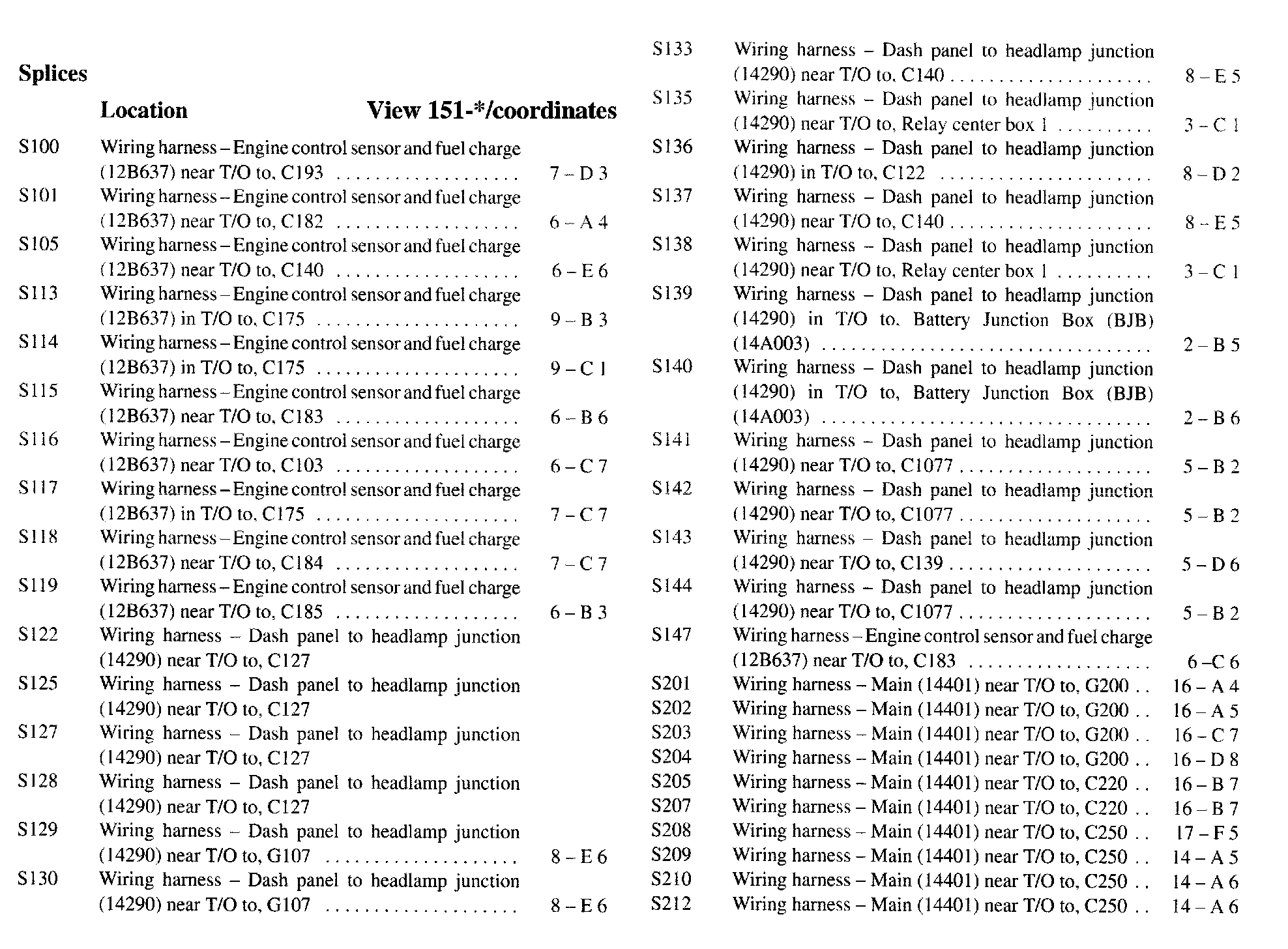 If a link on the Splices Location Index to a View is not provided, that means that the Splices and/or View in question does NOT apply to the vehicle model selected.