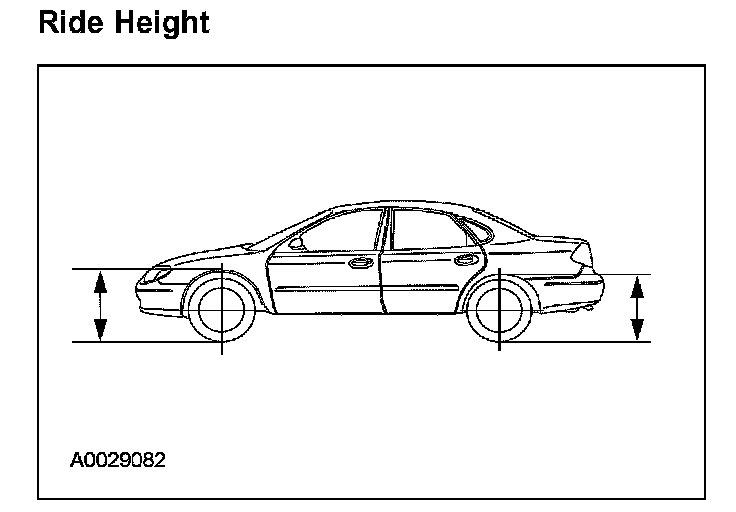 The vehicle ride height can be checked by measuring the distance between the lip of the fender(s) and the ground. The vehicle must be in a level, static ground position with full fluids and the fuel tank at least half full.