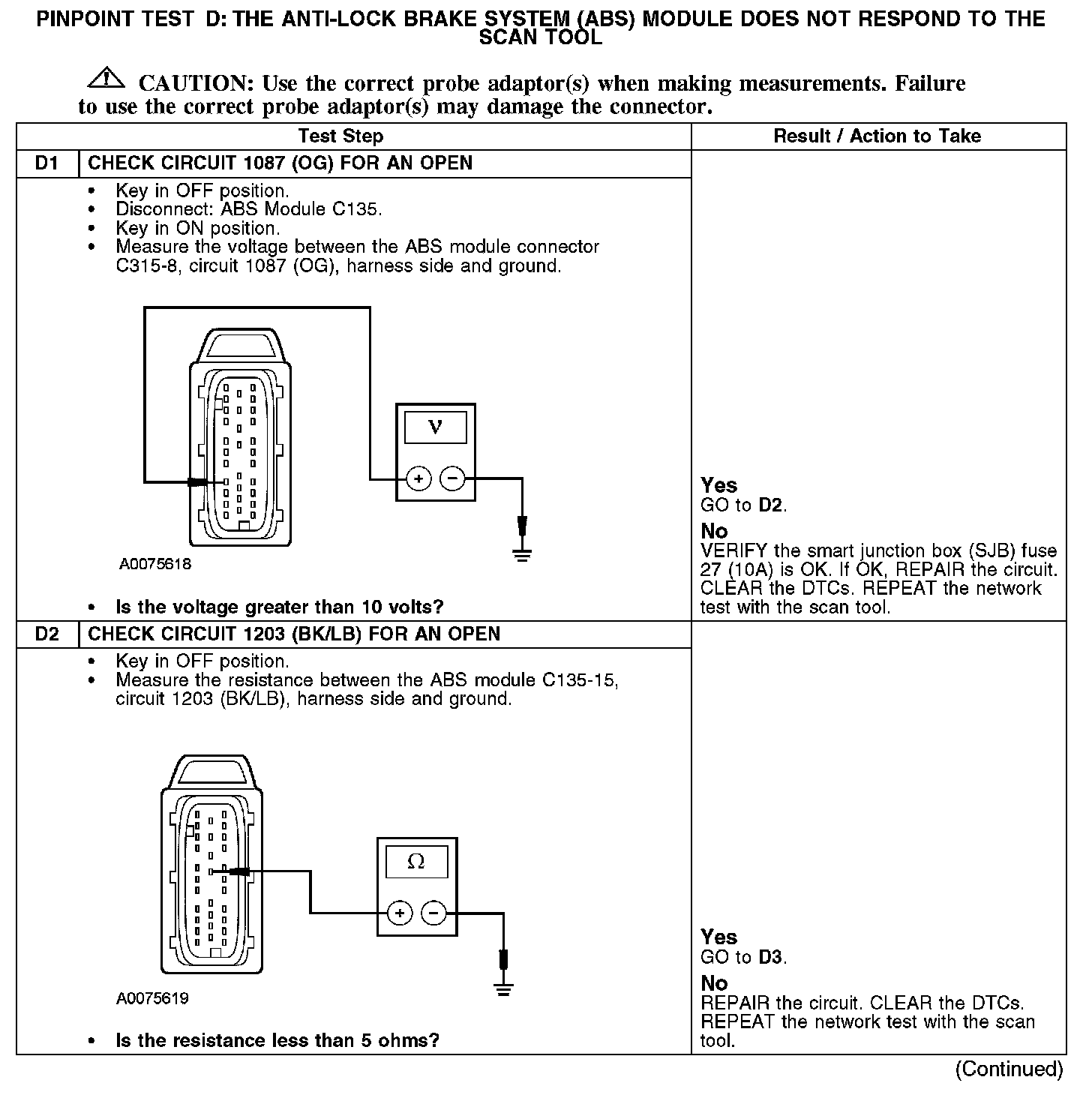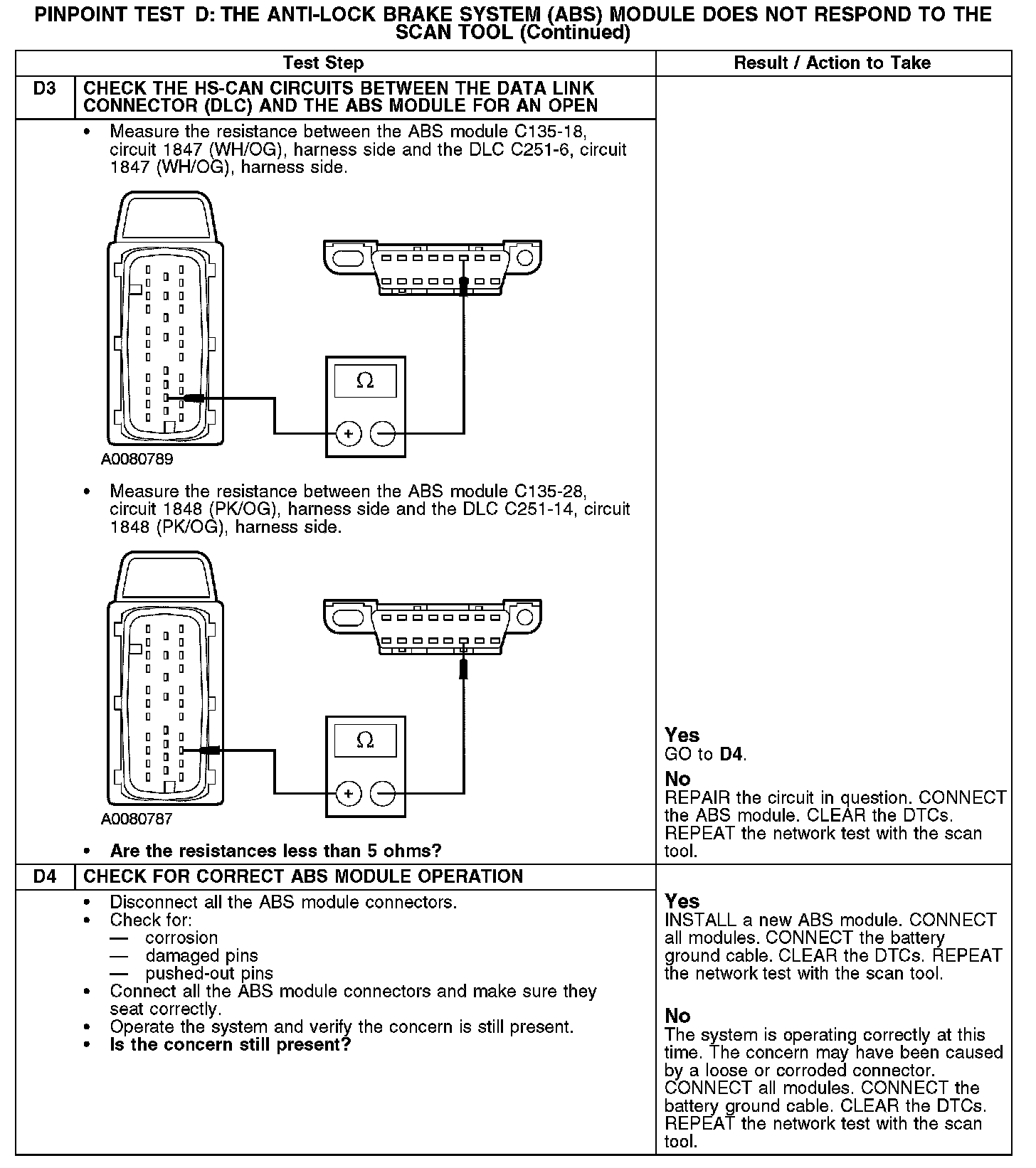 PINPOINT TEST D: THE ANTI-LOCK BRAKE SYSTEM (ABS) MODULE DOES NOT RESPOND TO THE SCAN TOOL