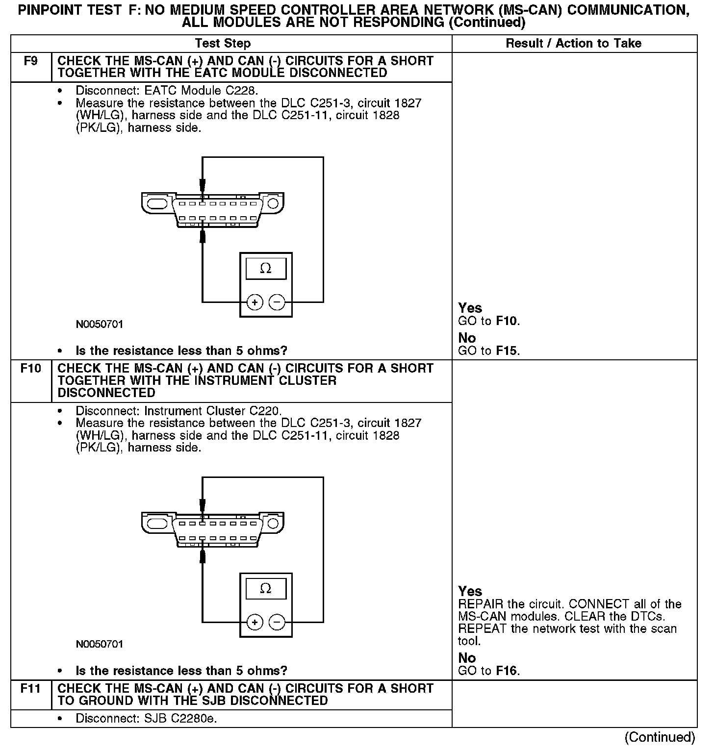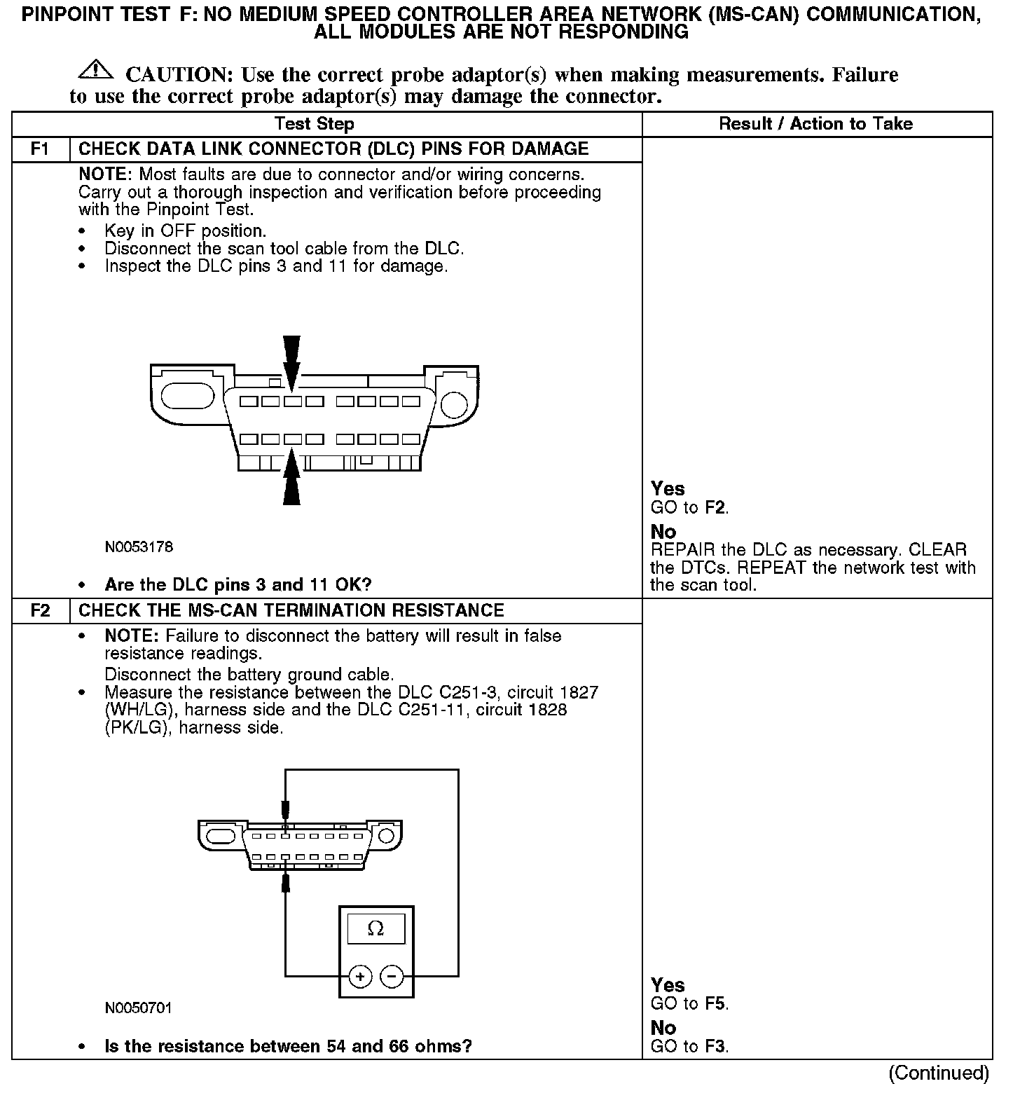 PINPOINT TEST F: NO MEDIUM SPEED CONTROLLER AREA NETWORK (MS-CAN) COMMUNICATION, ALL MODULES ARE NOT RESPONDINGF1-F2: