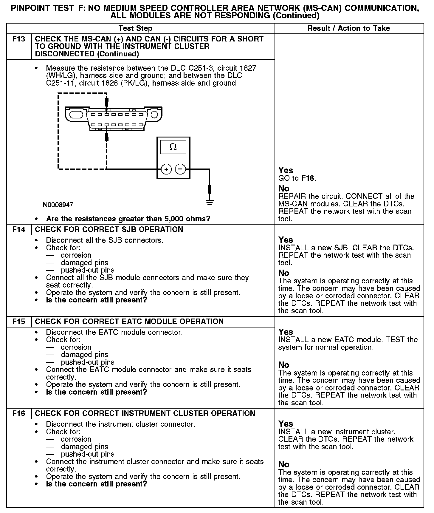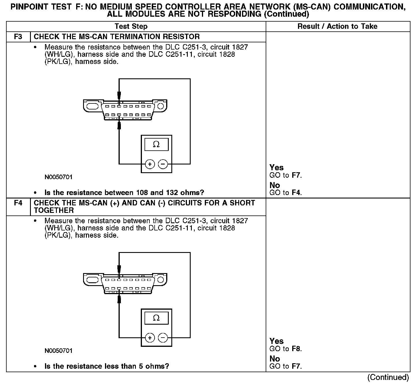 Test F: No Medium Speed Controller Area Network (MS-CAN) Communication, All Modules Are Not Responding