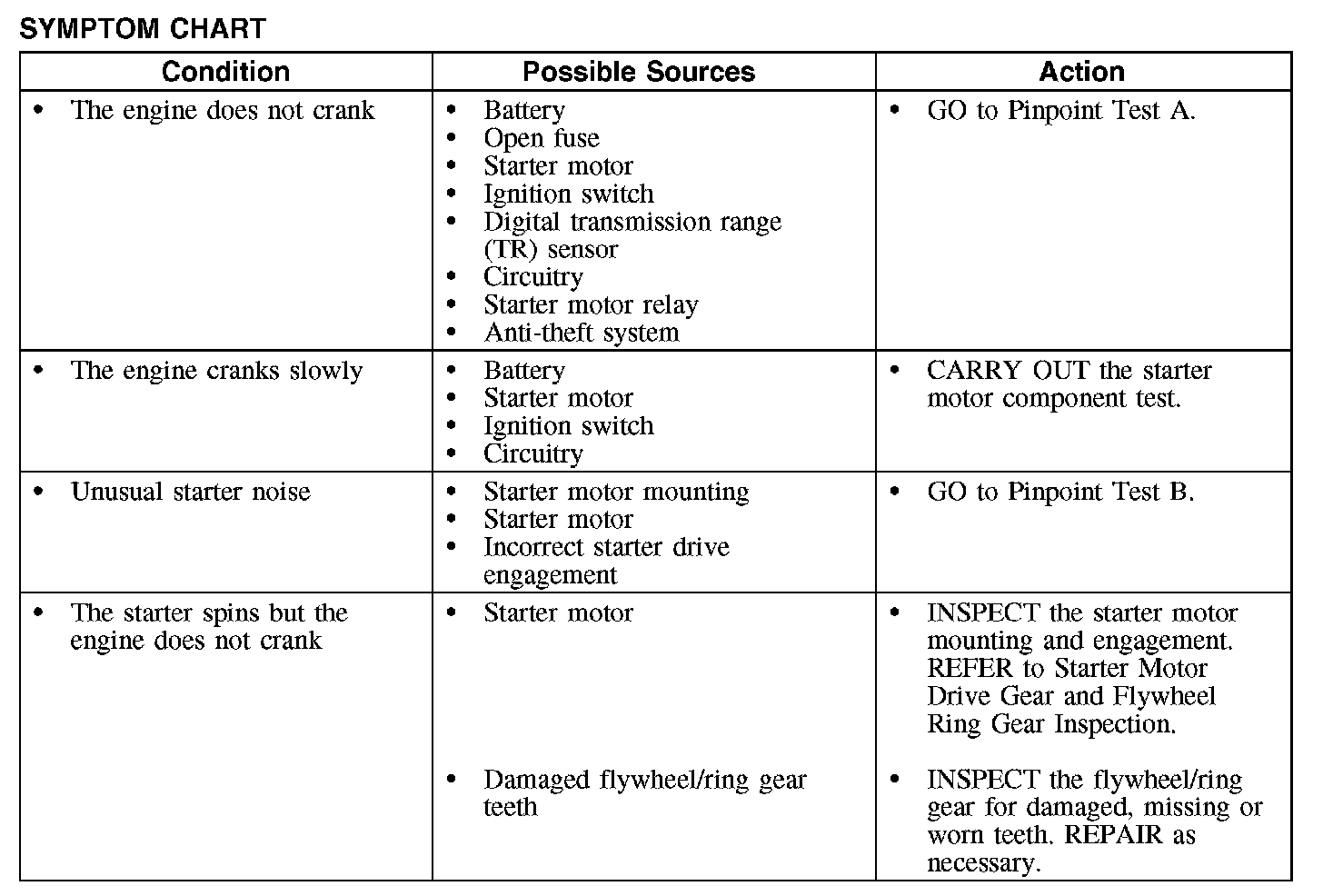 Symptom Chart: