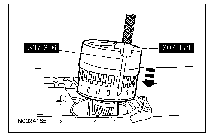 61. Using the special tool, install the manual control lever shaft seal.