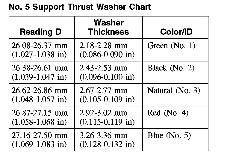 No. 5 Support Thrust Washer Chart: