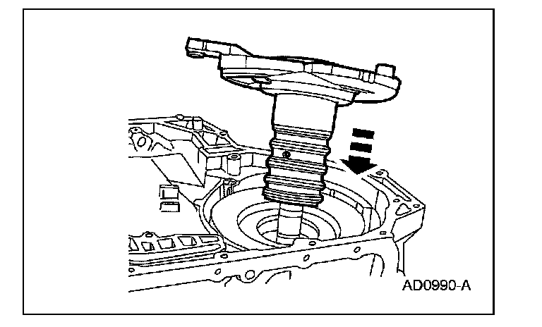 55. CAUTION: The No. 9 direct hub needle bearing may still be inside the transaxle from the No. 8 driven sprocket support thrust washer selection procedure. Use petroleum jelly to hold bearing and washer in place.