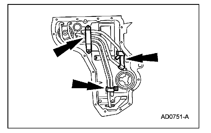 60. Install the fluid lube tube brackets and bolts.