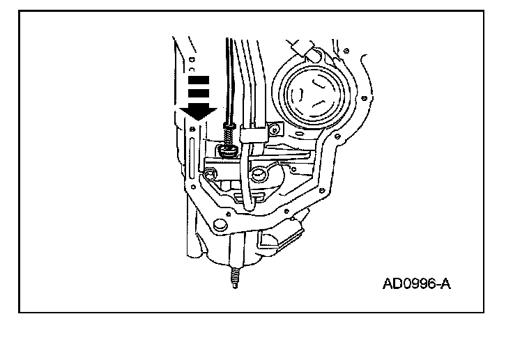 ^ Slide the parking lever actuating rod down to fit in the park pawl.