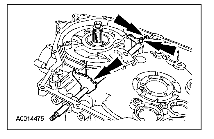 63. NOTE: The manual control valve detent lever must be installed with the shoulder and roll pin hole pointing toward the driven sprocket support.