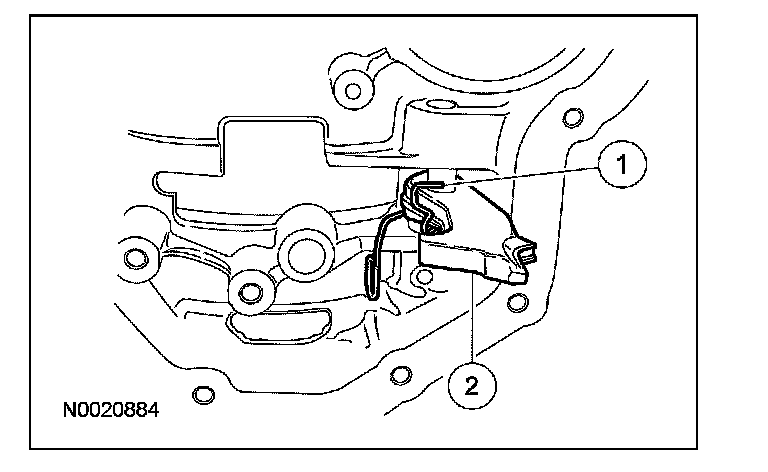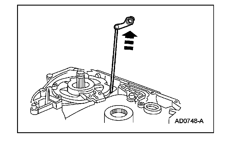 NOTE: The position of the manual valve detent lever is different than past models. The roll pin and shoulder point toward the driven sprocket support. Note the position of the lever during disassembly for correct assembly.