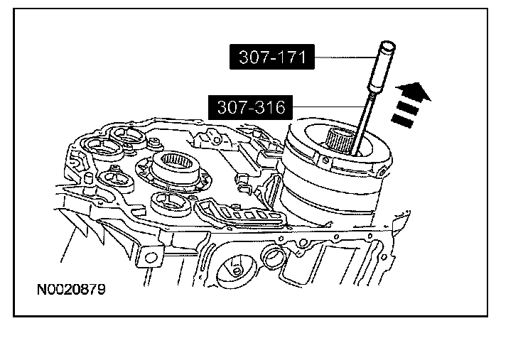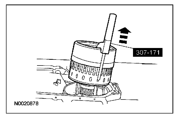 54. Using the special tools, remove the reverse clutch and planet assembly.