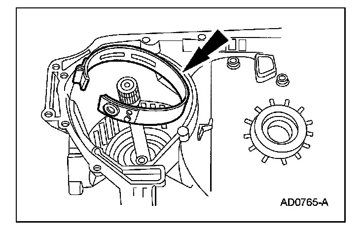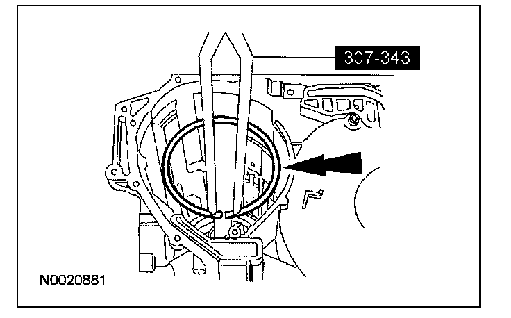 Using the special tool, remove the beveled retaining ring and record the shape of the ring end.