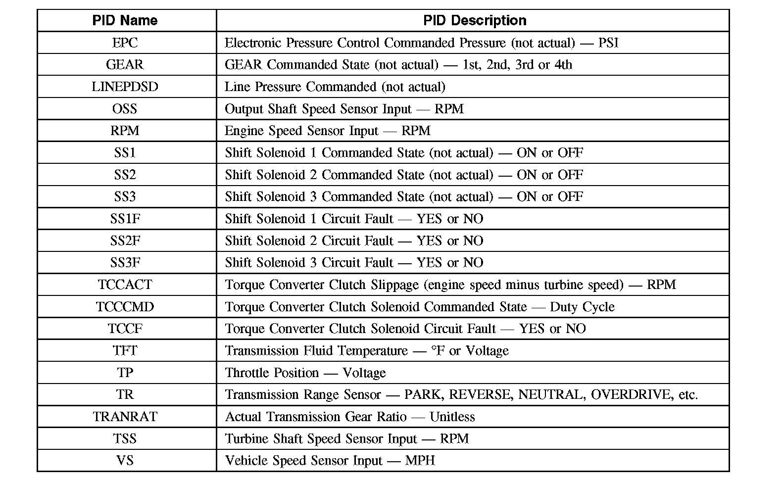 To confirm that the OSC value was sent by the scan tool and the PCM has accepted the OSC substitution, a corresponding PID for each OSC parameter must be monitored. Additional PIDs should be monitored to help the technician adequately diagnose the transmission.