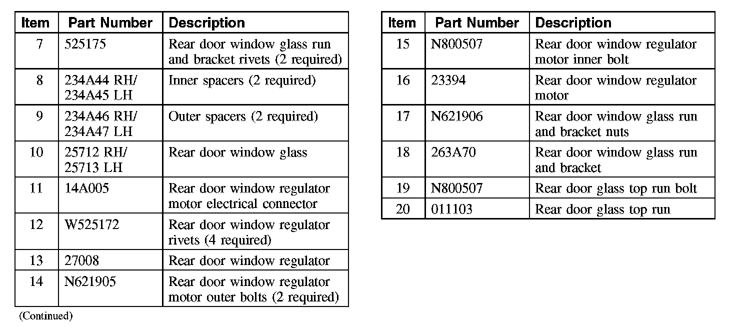 WINDOW REGULATOR AND MOTOR - REAR DOORSpecial Tool(s):