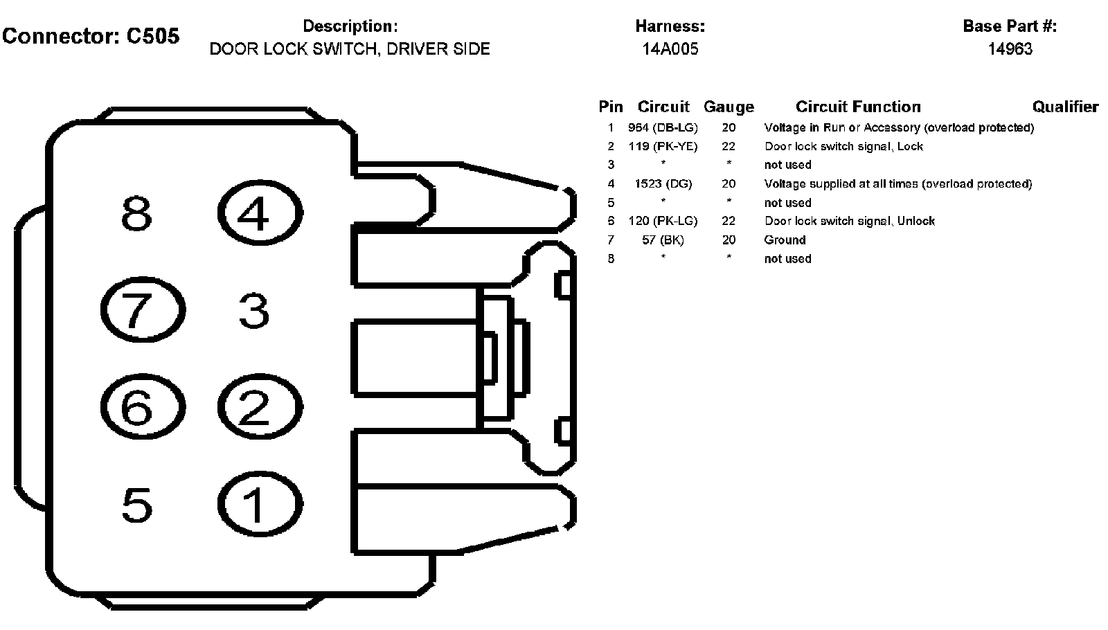 Door Lock Switch, Driver Side