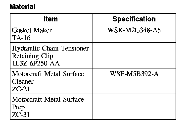 57. CAUTION: If the engine front cover is not secured within 4 minutes, the sealant must be removed and the sealing area cleaned with metal surface cleaner. Allow to dry until there is no sign of wetness, or 4 minutes, whichever is longer. Failure to follow this procedure may cause future oil leakage.