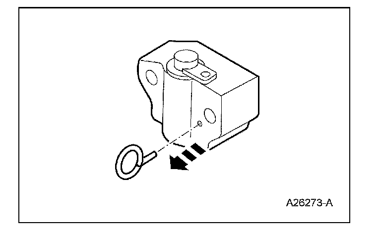 49. Remove the retaining clip from the RH timing chain tensioner.