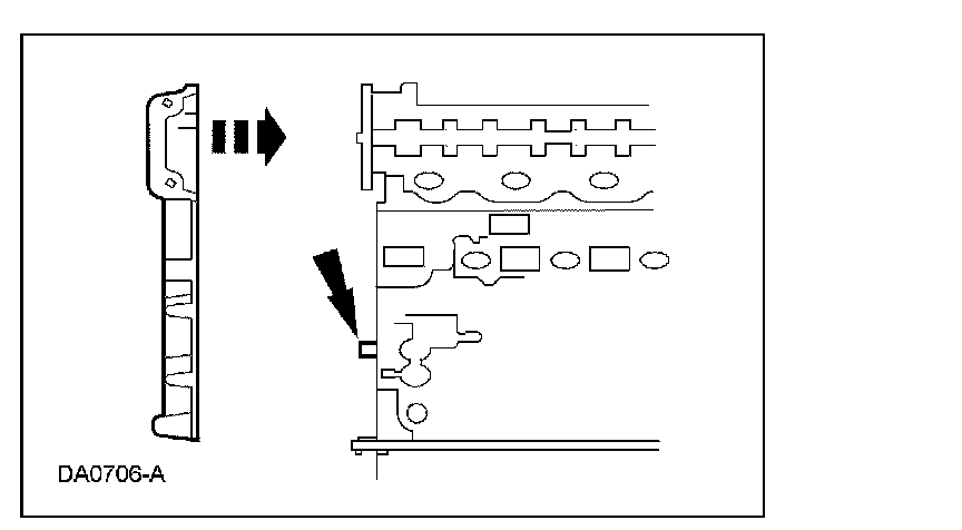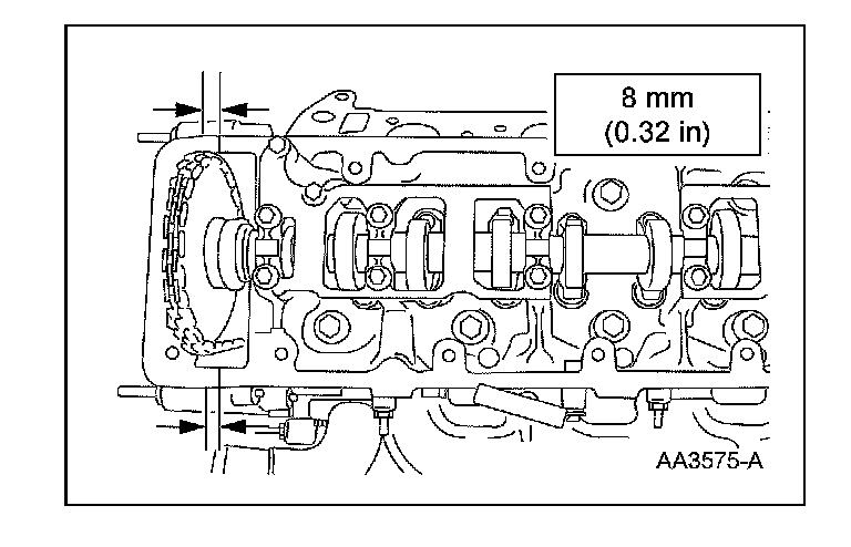42. NOTE: The LH timing chain tensioner arm has a bump near the dowel hole for identification.