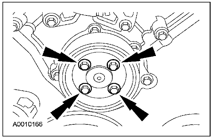 70. Position the coolant pump pulley on the coolant pump and install the 4 bolts.