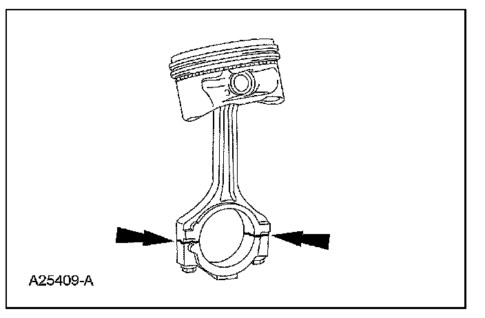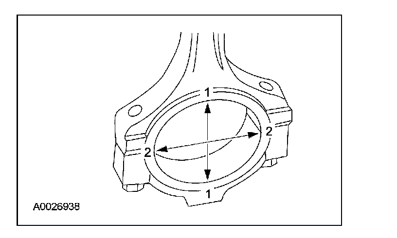 1. Tighten the bolts to specification, then measure the bore in 2 directions. The difference is the connecting rod bore out-of-round. Verify the out-of-round is within specification.