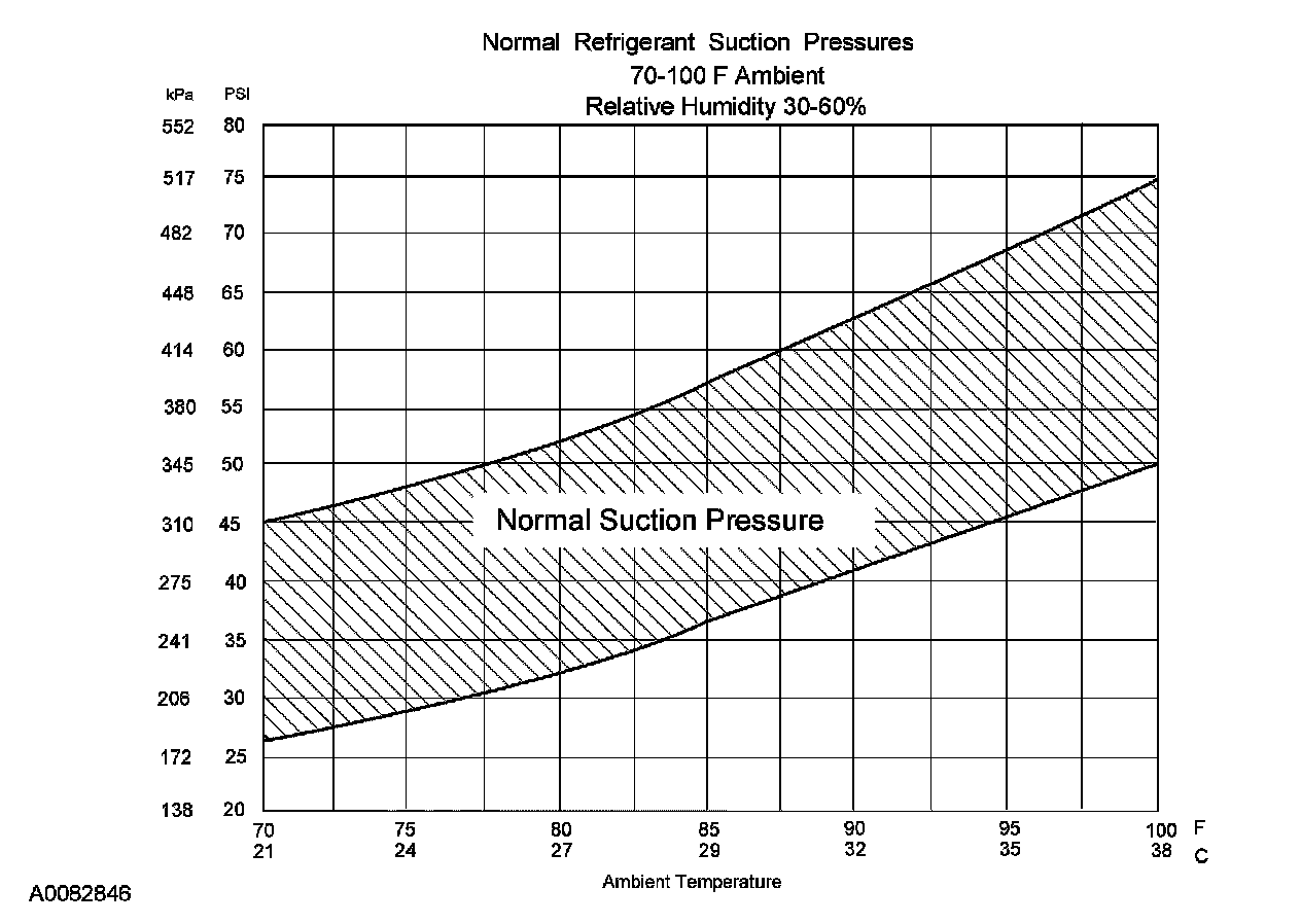- The system performance can be evaluated and diagnosed by analysis of the compressor suction and discharge pressures. The following procedure is used to determine if the system is operating at normal pressures.