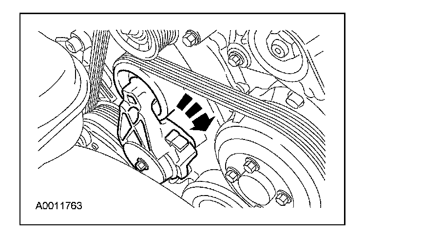 Rotate the tensioner clockwise and remove the accessory drive belt.