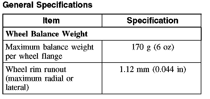 General SpecificationsCAUTION: Use only special tool 204-354 anytime tire pressures are measured to be sure that accurate values are obtained.