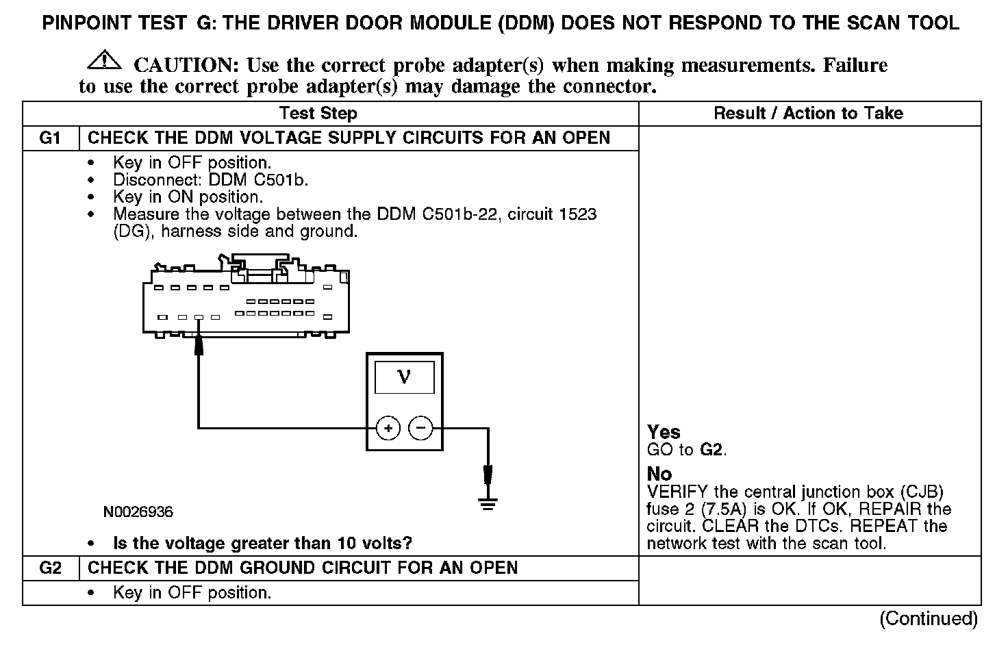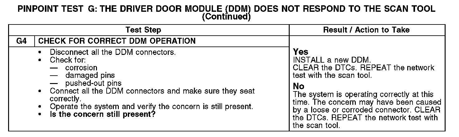 Test G: The Driver Door Module (DDM) Does Not Respond To The Scan Tool