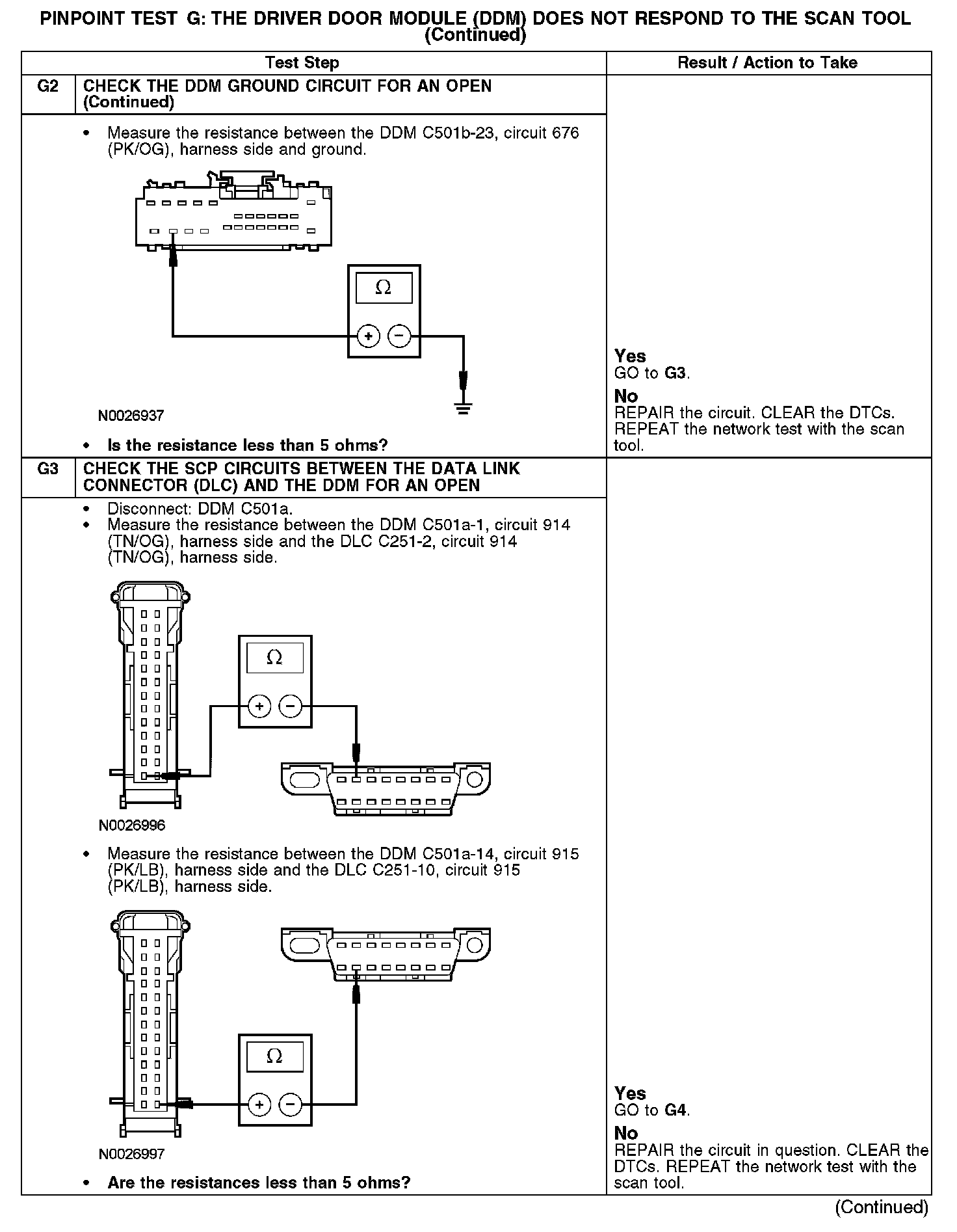 PINPOINT TEST G: THE DRIVER DOOR MODULE (DDM) DOES NOT RESPOND TO THE SCAN TOOLNormal Operation