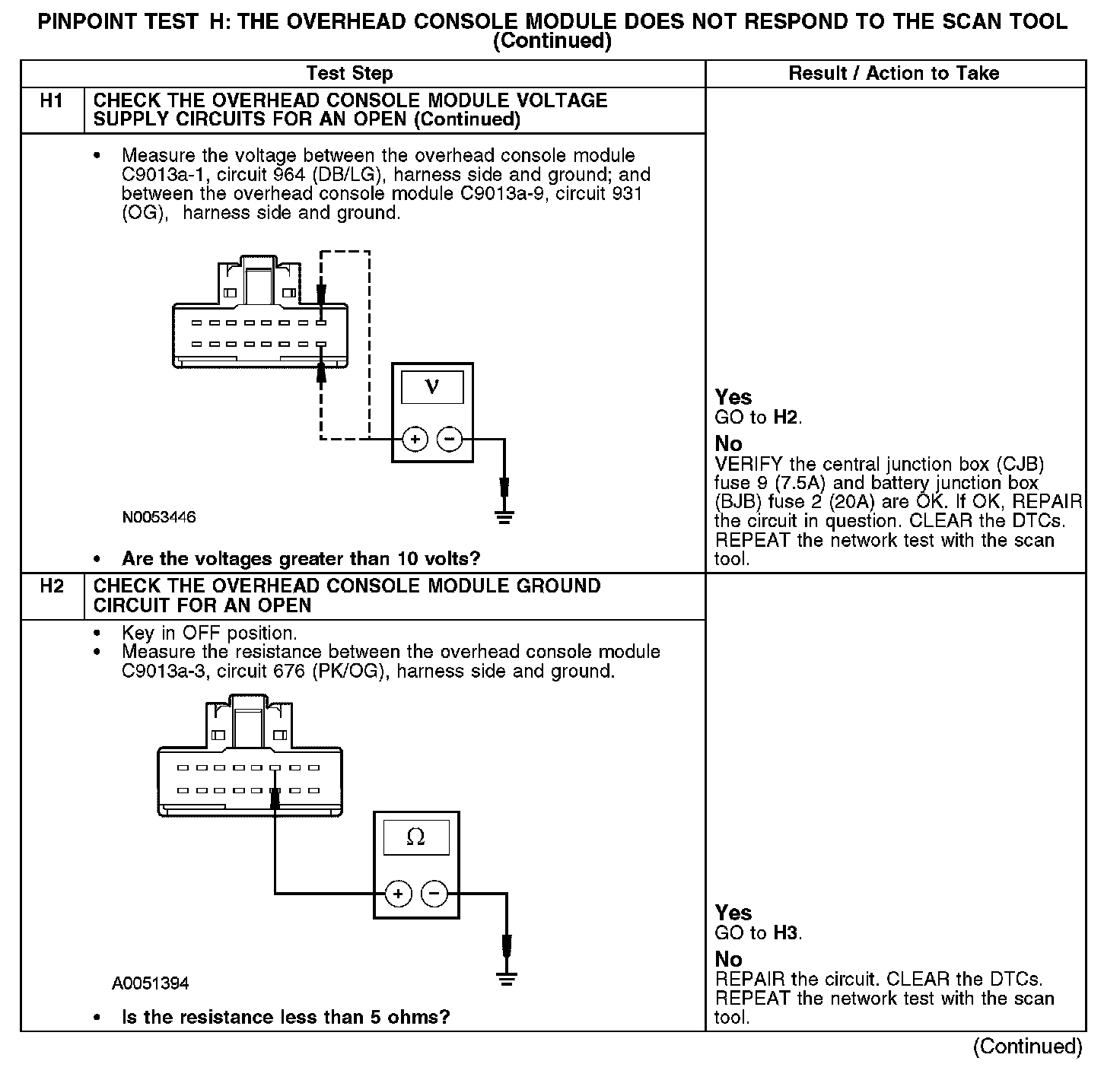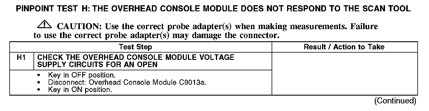 PINPOINT TEST H: THE OVERHEAD CONSOLE MODULE DOES NOT RESPOND TO THE SCAN TOOLNormal Operation