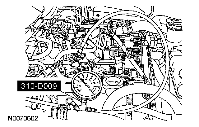 6. NOTE: Upon completion of the fuel system pressure test, open the drain valve on the special tool and release any residual fuel into a suitable container prior to removing the tool.