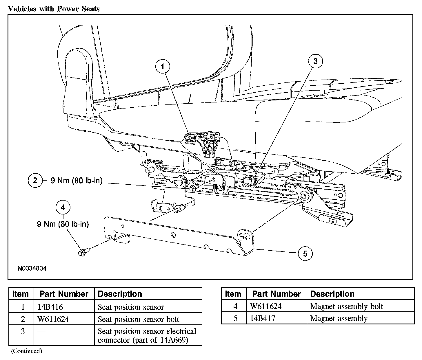 NOTE: The power seat position sensor is mounted on the inboard side of the driver inboard seat track.