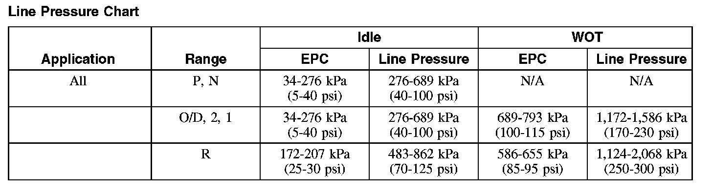 Line Pressure Chart: