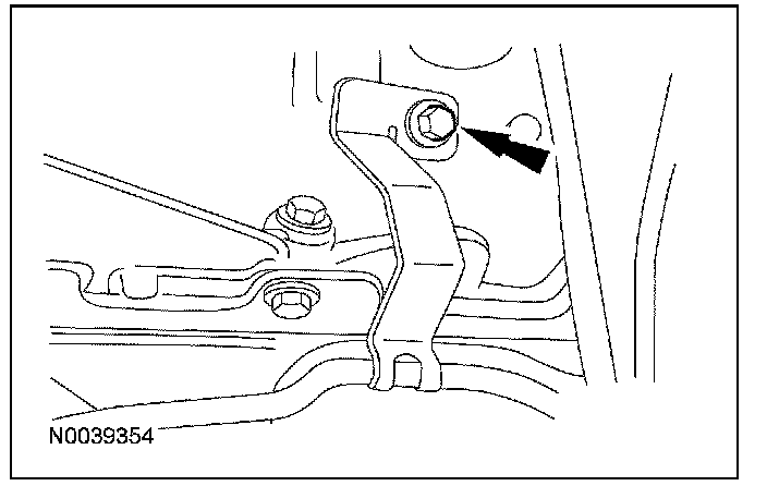 8. Remove the bolt retaining the line routing bracket to the engine and remove the transmission fluid cooler tube(s).