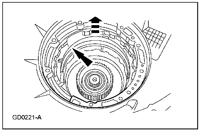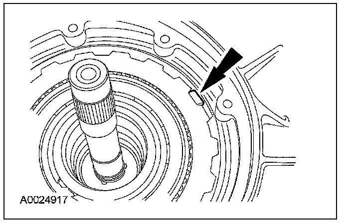 40. Align the reverse sun shell with the overdrive band anchor pin for removal.