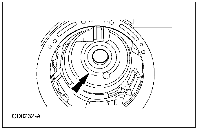 34. NOTE: For assembly, note the location of the check ball and the intermediate clutch piston return spring pack indent during disassembly.